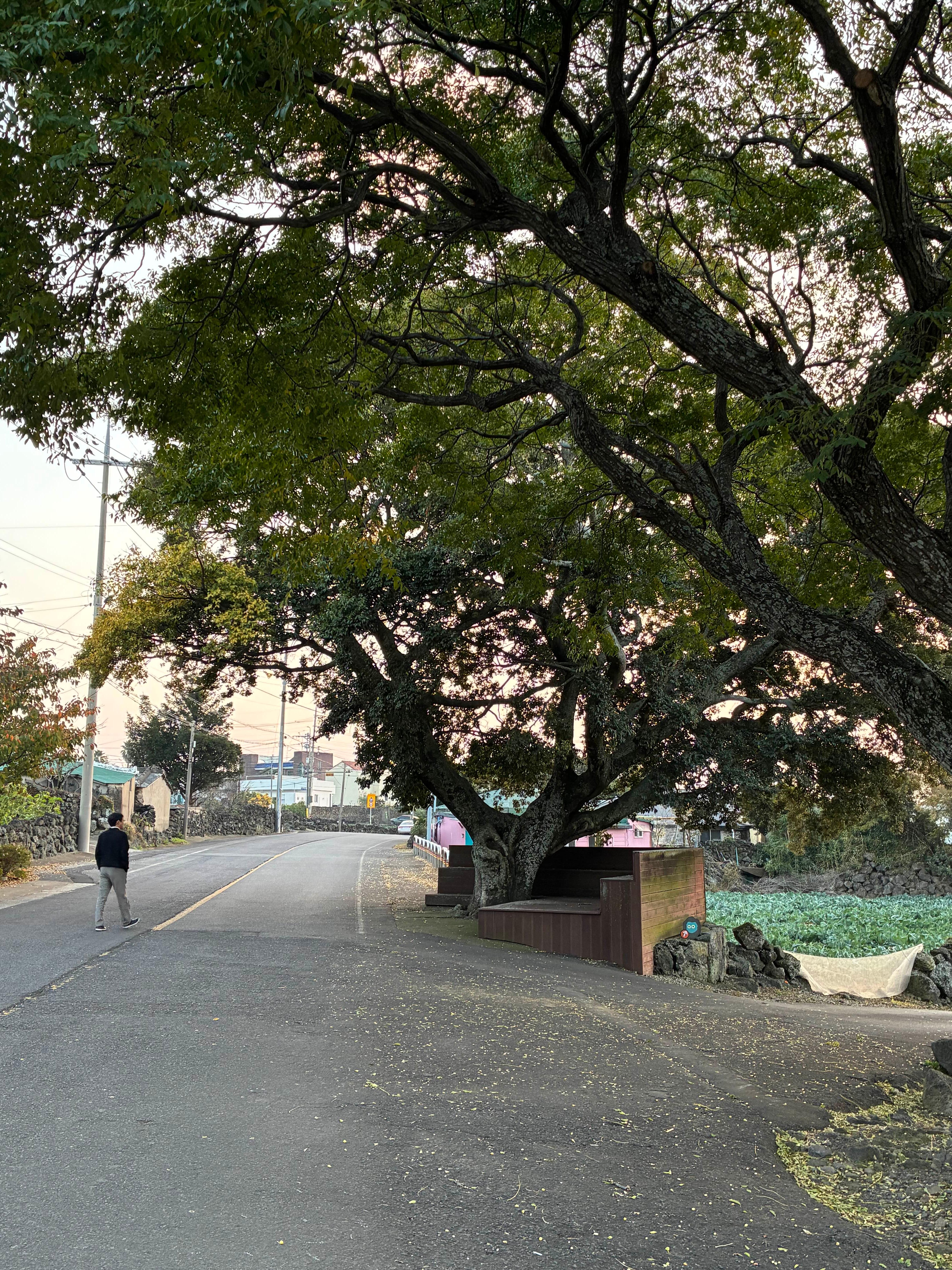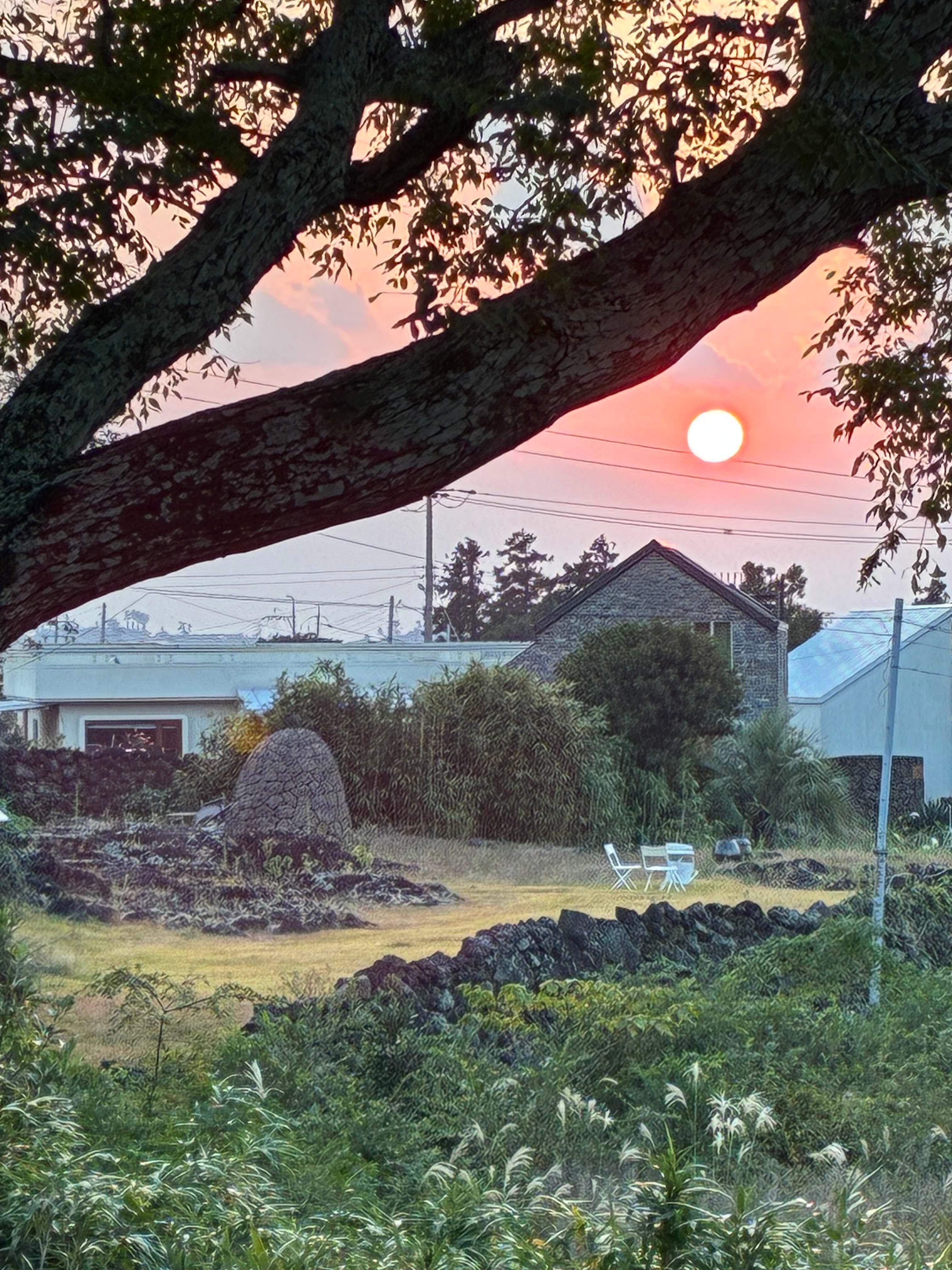 숙소 바로 앞에 커다란 팽나무가 있어 앉아서 마을 풍경 바라보며 머리 식히기 좋았고, 이곳에서 보는 석양이 괜찮았음.