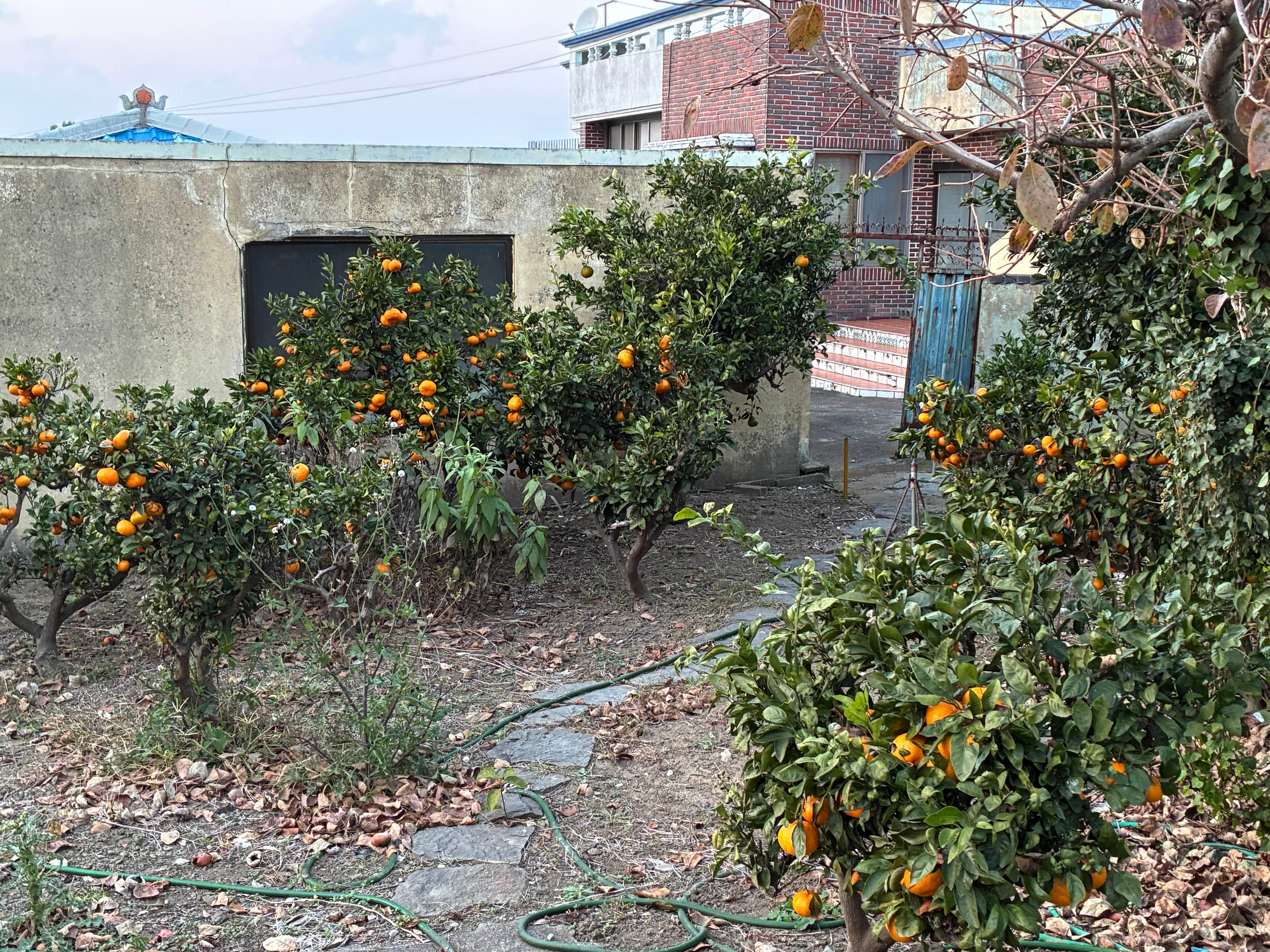 집 앞에 귤나무가 우리 동네 감나무처럼 대문 앞을 지키고 있었음.