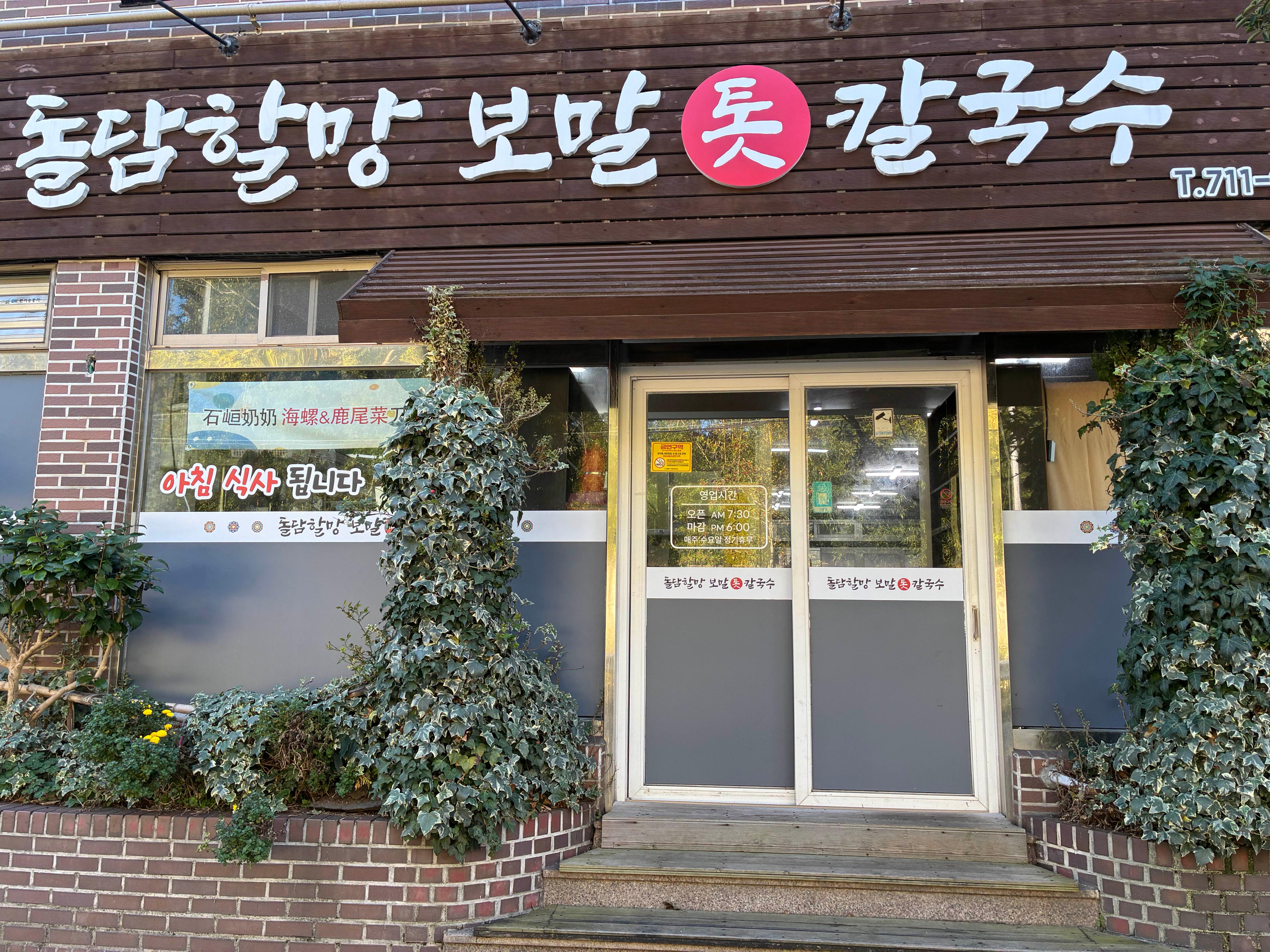 원룸촌인 듯한 주택가 상가에 위치하 '돌담 할머니 보말 톳 칼국수'
