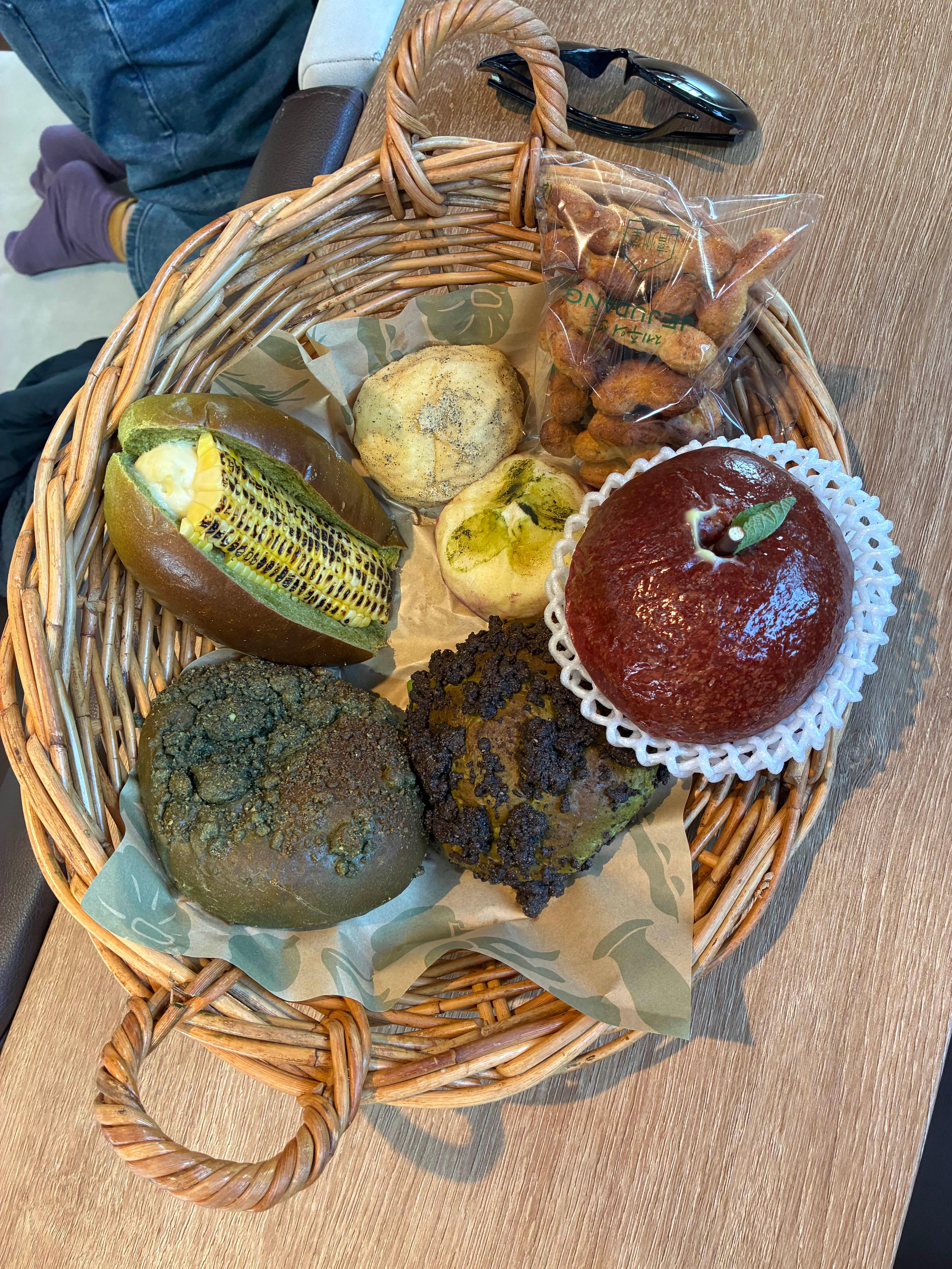 따뜻한 아메리카노와 곁들여서 시그니처 제품 몇 개랑 야채 모양의 빵 몇 개를 담아 나눠 먹었다.