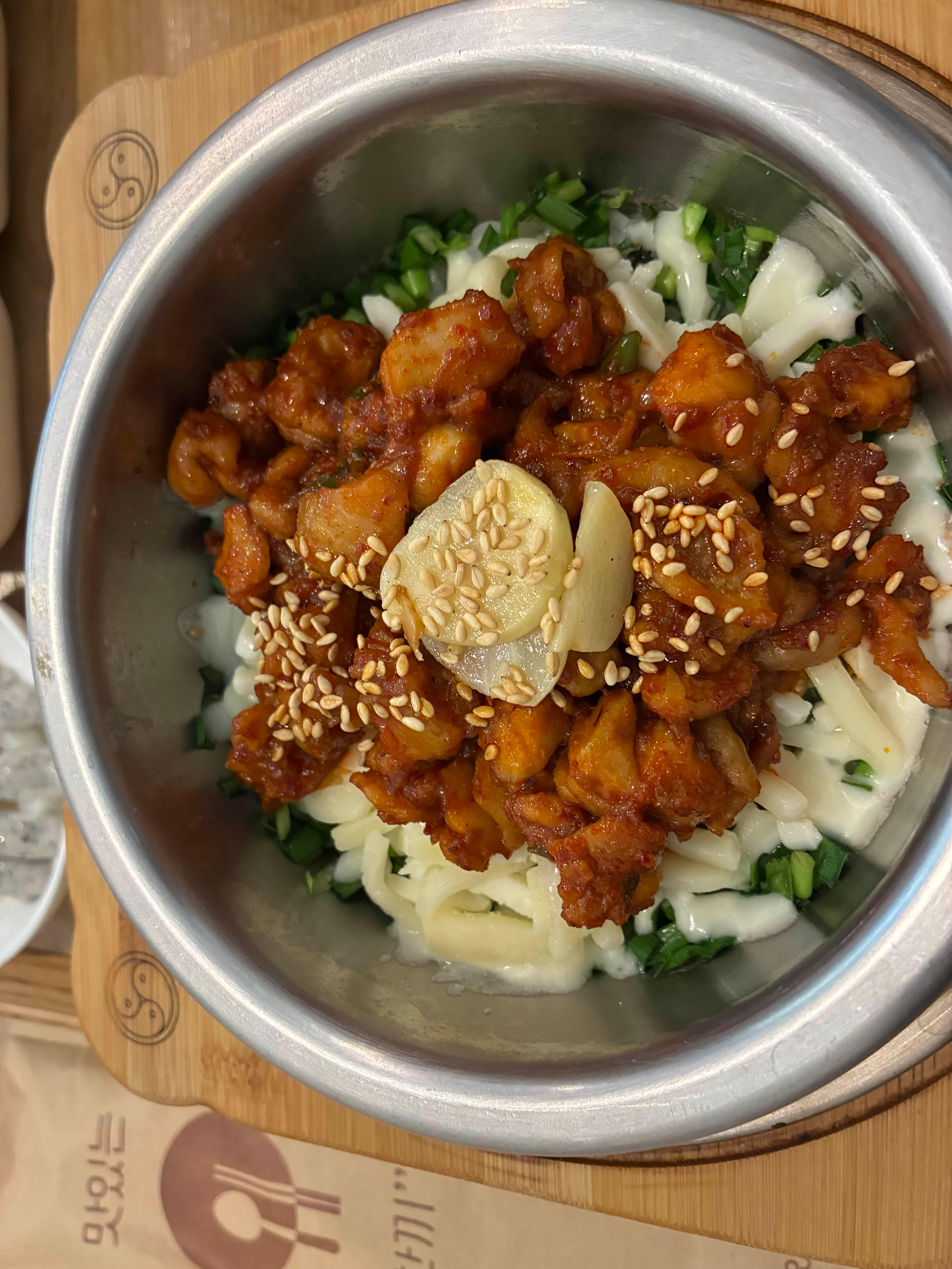 치즈가 찐득한게 김이 솔솔 나고 비비는 동안 이미 입 안에 침이 가득 고임. 닭갈비도 많이 들어갔어.